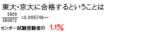 東大に合格するということは、センター試験受験者(国公立大学受験者)のわずか0.55%