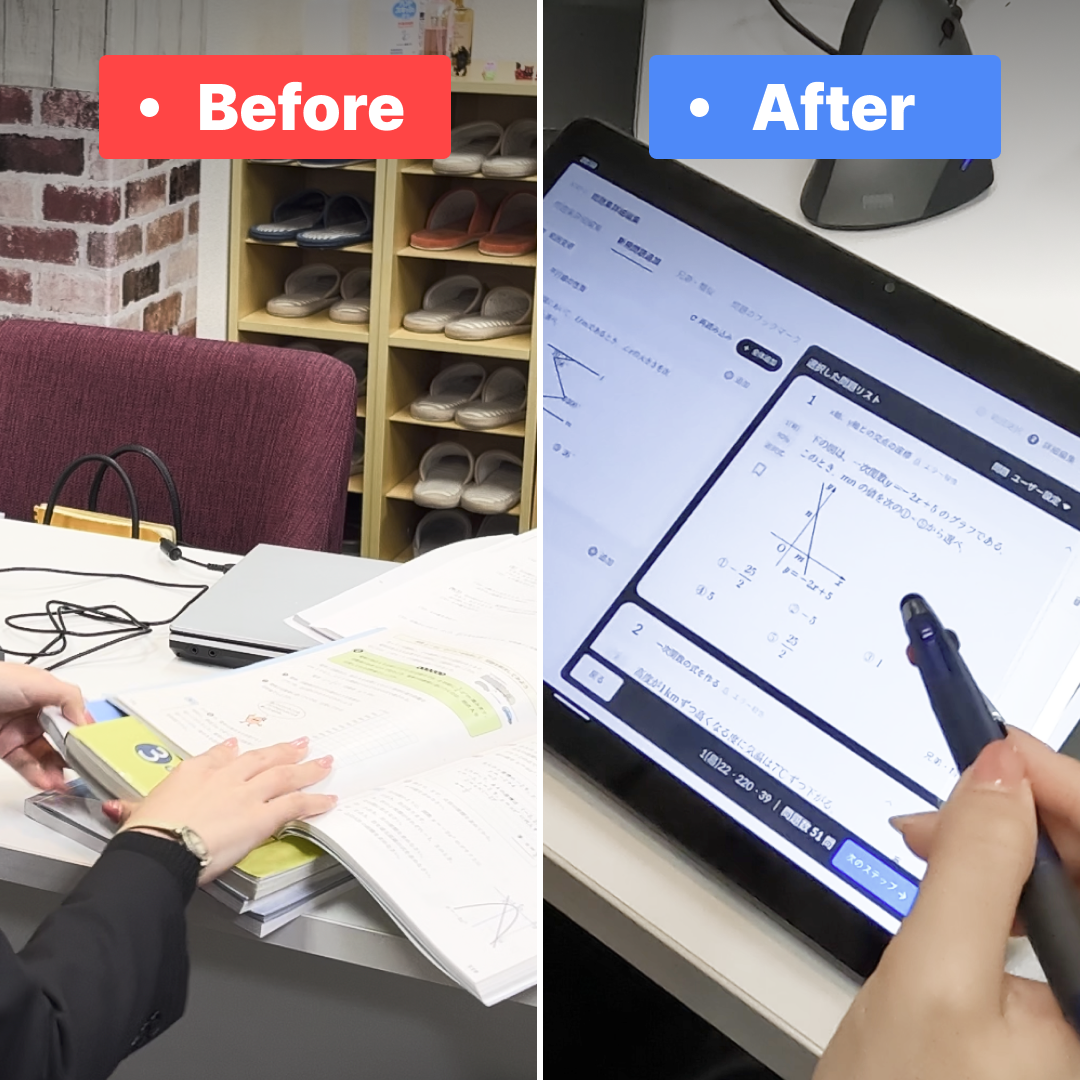 今の生徒たちは、生まれたときからiPhoneやパソコンなどの電子デバイスに囲まれて育ってきました。そのため、何でもすぐに検索して疑問を解消したり、最新の情報をいち早く手に入れたりすることが可能な環境に順応していることが多いです。しかし、その生徒たちを指導する教育現場の先生方は、アナログな情報管理、電子化されていない紙の問題集など、今一歩デジタルの潮流に乗り切れていない環境下で生徒指導に臨まざるを得ないことも、少なくないのではないでしょうか。