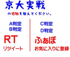 京大合格大作戦 模試京大実戦 2014年第一回京大実戦の感触を教えてください。 2014年第一回京大実戦の感触を教えてください。 結果はまだ先だけど、解き終えた感触でお答えください。 2014年第一回京大実戦掲示板... 大学受験合格大作戦