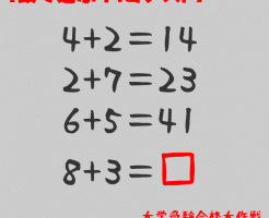 IQテスト pickupクイズ問題IQ 【頭で遊ぶ!IQテスト】□にあてはまる数字を見つけよ!(問題&解答) ヒント 足し算と掛け算を使ってみよう! 解答編 左側の2つの数字を掛けたものと2つの数字を足したものを足し合わせたものが右側の数字になります。 ... 大学受験合格大作戦